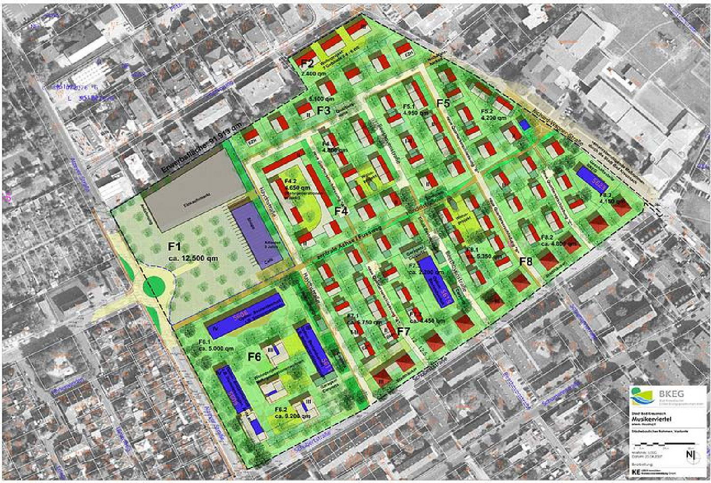 Die BKEG - Bad Kreuznacher Entwicklungsgesellschaft mbH plant im Zuge der Konversion Bad Kreuznach auf dem ehemaligen US-Areal Housing II die Entwicklung des Wohn- und Mischgebietes namens Musikerviertel. Das Planungsgebiet befindet sich im Südosten von Bad Kreuznach und hat eine Größe von ca. 9,6 ha.