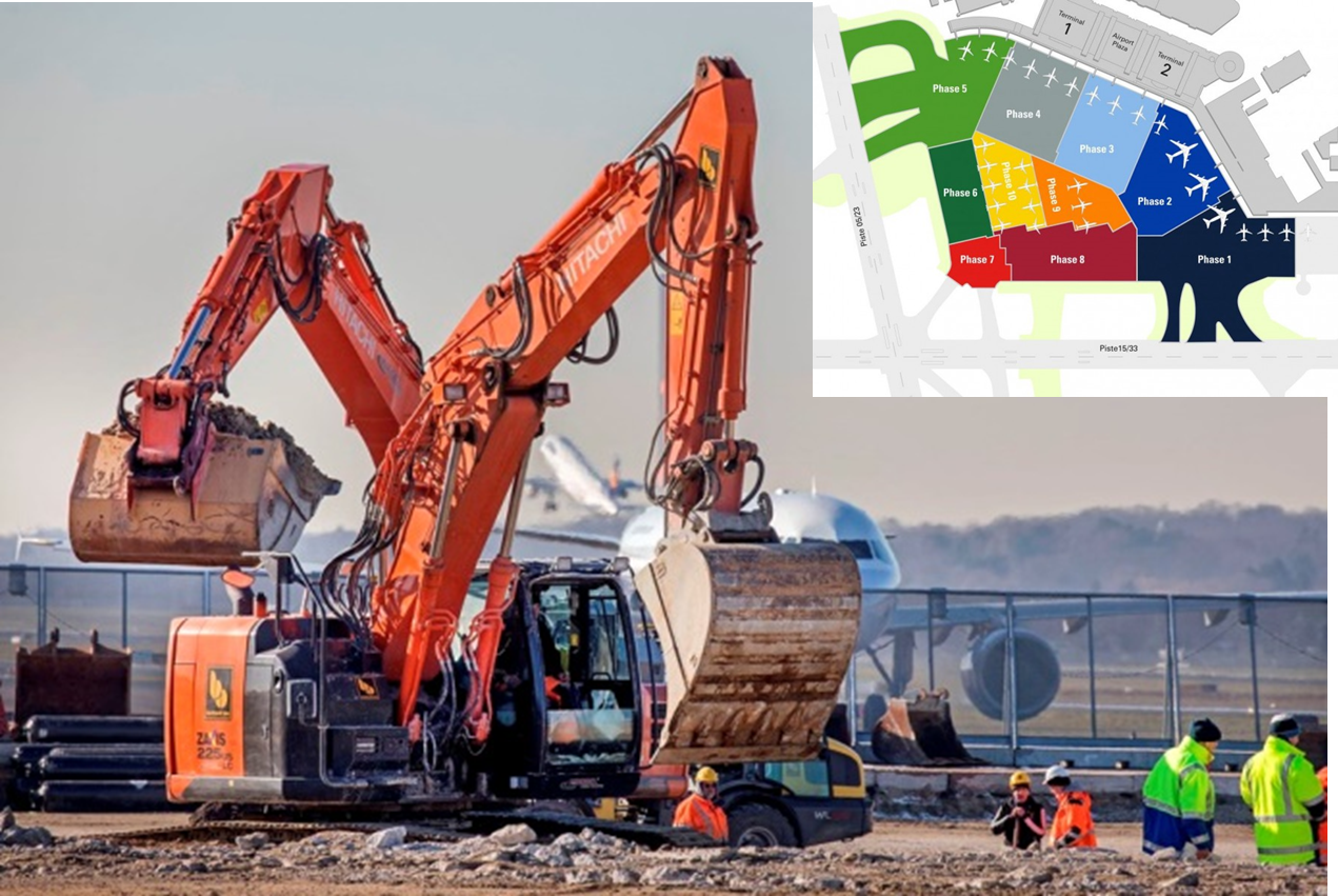 Sämtliche Bauphasen werden innerhalb des Sicherheitsbereichs des Flughafens hergestellt. Die beengten Verhältnisse führen gemeinsam mit der Tatsache, dass das Projekt unter laufendem Passagier-, Anlagen- und Flugbetrieb realisiert werden muss, zu starken Abhängigkeiten zwischen dem Bau- und dem Flughafenbetrieb.