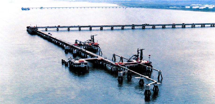 Jetty with three tanker berths for unloading of incoming tankers with raw liquids and loading of tankers with various highly flammable chemical liquids produced by the adjacent ICI plant.