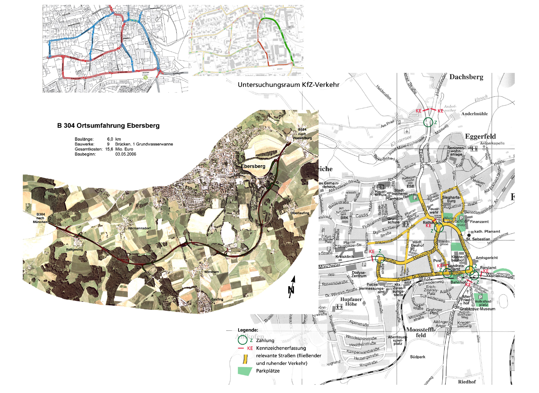 Die Stadt Ebersberg im Osten von München wird hauptsächlich durch die Bundesstraße B304 sowie die Staatsstraßen St2080 und St2086 an das übergeordnete Straßenverkehrsnetz angebunden. Da diese Straßen durch die Innenstadt von Ebersberg verlaufen, wird diese mit Durchgangsverkehr belastet.